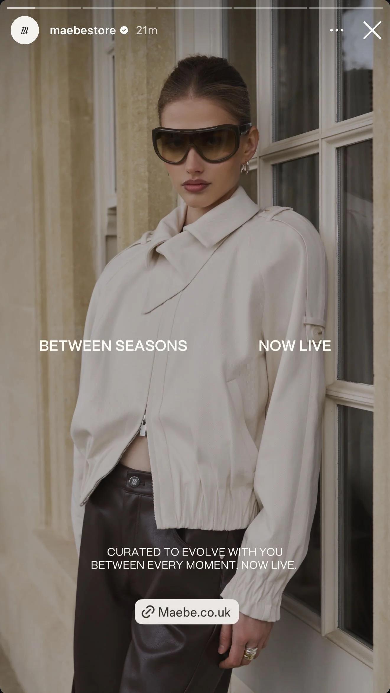 Founded by influencer and entrepreneur Molly-Mae, maebe was born out of inspiration from her community. We worked closely with the brand on launch asset creatives for “Between Seasons” for social, website and email campaign.